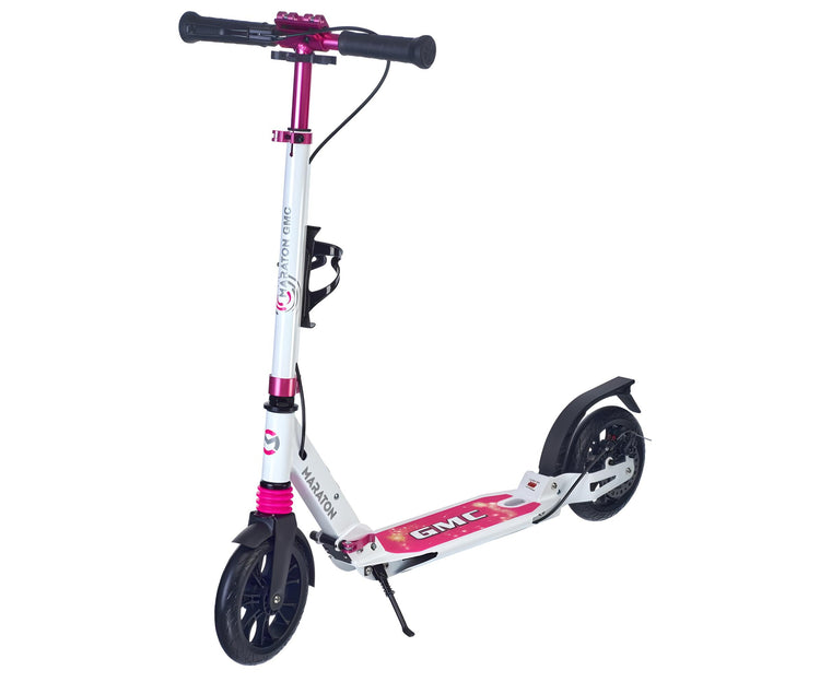 Scooter Maraton GMC is an ideal option for teenagers and adults, designed for ages 7 and up. Perfect for riding around the city because it has two shock absorbers and large wheels, thanks to this you will not feel small bumps and enjoy a wonderful, smooth ride. And with the help of steering wheel adjustment, you can easily adjust the scooter to your height.