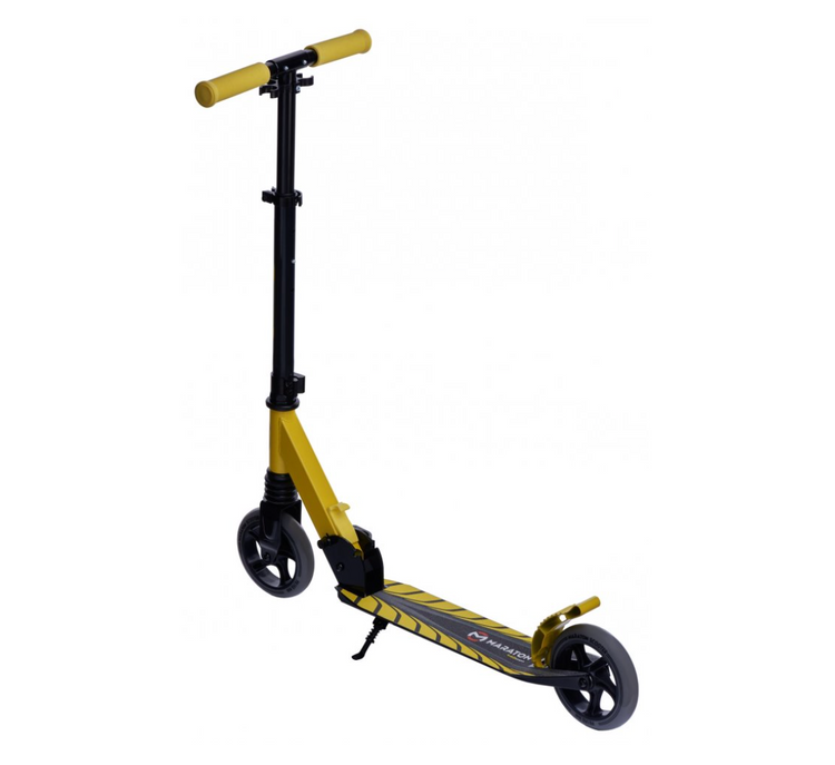 The Maraton Sport 145 scooter is an ideal scooter for children aged 4 and up who are just starting to ride. The front shock absorber makes riding more comfortable and softens the vibrations that are typical when riding on uneven roads. The scooter handle is height-adjustable to suit the child's height. Polyurethane wheels with ABEC-9 bearings provide a good ride. The scooter comes with a bell and a flashlight.