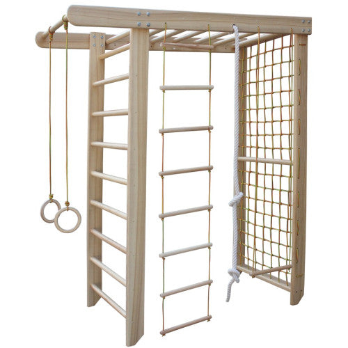 Now playing sports will bring a lot of positive emotions to your child due to the fact that modern children's sports corners have everything that is necessary for exciting games. In addition, such sports equipment has a stylish design, so it will organically fit into the interior of absolutely any children's room. The design provides for the presence of a Swedish wall, a hanging ladder, a rope and much more. Going in for sports and playing on such equipment is a real pleasure for your baby!