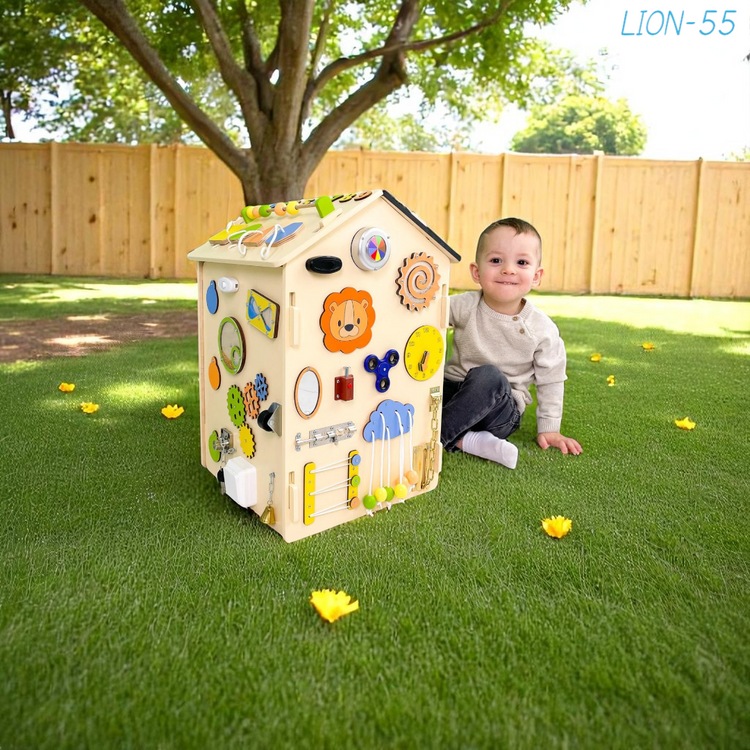 Πολυάσχολο σπίτι για την ανάπτυξη των κινητικών δεξιοτήτων Montessori "Lion" 55x35x35