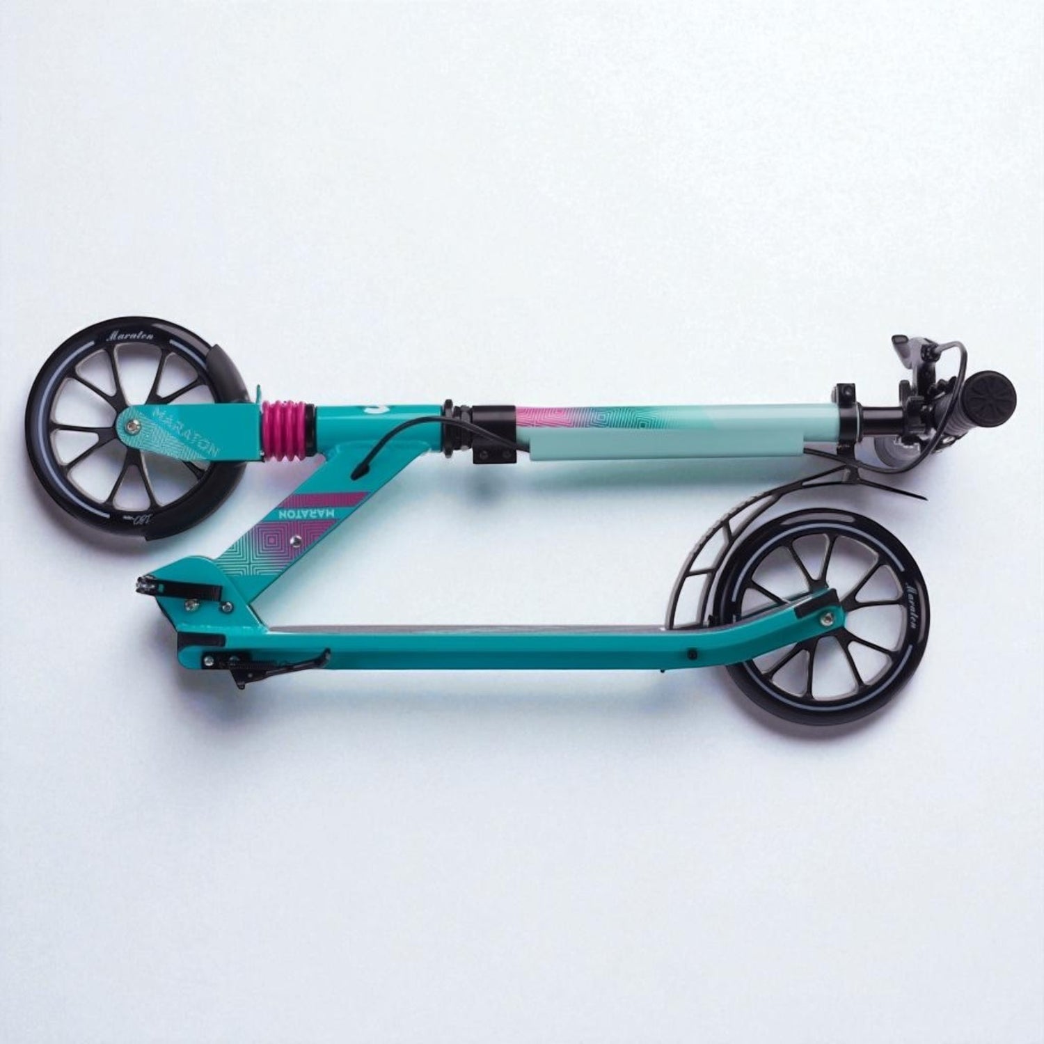 - Μέγιστη Άνεση και Ομαλή Κύλιση: Χάρη στους μπροστινούς και πίσω αποσβεστήρες κραδασμών, καθώς και στους τροχούς πολυουρεθάνης 200mm με φαρδύ (30mm) πέλμα και ρουλεμάν ABEC 9, το πατίνι ξεπερνά εύκολα τις ανωμαλίες του δρόμου, εξασφαλίζοντας ομαλή και ευχάριστη οδήγηση. Η ανάγλυφη επίστρωση των τροχών προσθέτει αισθητική αξία.