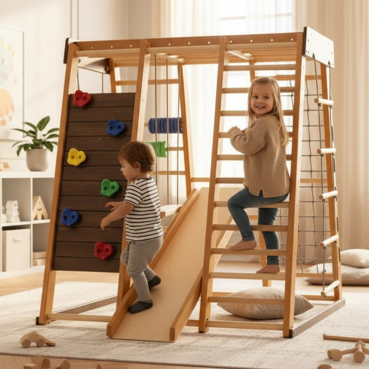 In our children's sports goods store in Cyprus, you'll find a variety of equipment to support your child's development. We offer wall bars with gymnastic accessories, gymnastic mats, and engaging play complexes for little ones, including pikler triangles, busy boards, and other valuable products designed to foster growth and creativity.