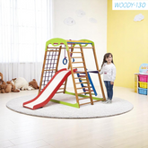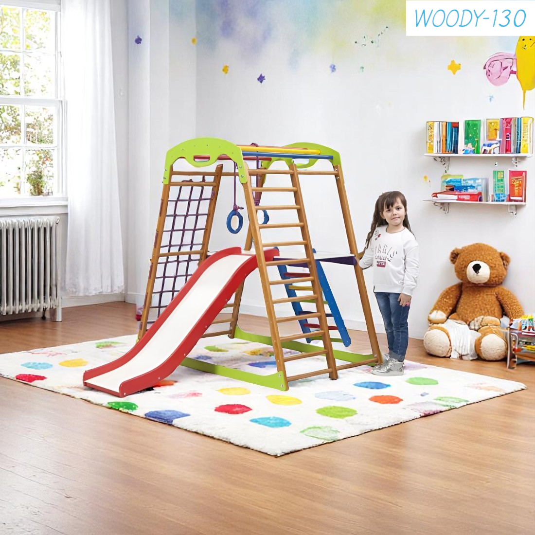 "Вуди-130" компактный и многофункциональный спортивный комплекс с подставкой для самых маленьких, на которые даже детки от 1 года смогут забраться и безопасно спуститься. Многофункциональный спортивный комплекс позволит Вашему ребенку с детства развивать навыки координации, ловкости, гибкости и выносливости. Это лучшая замена гаджетам и телевизору, а также прекрасная идея для полезного проведения времени вместе всей семьей.