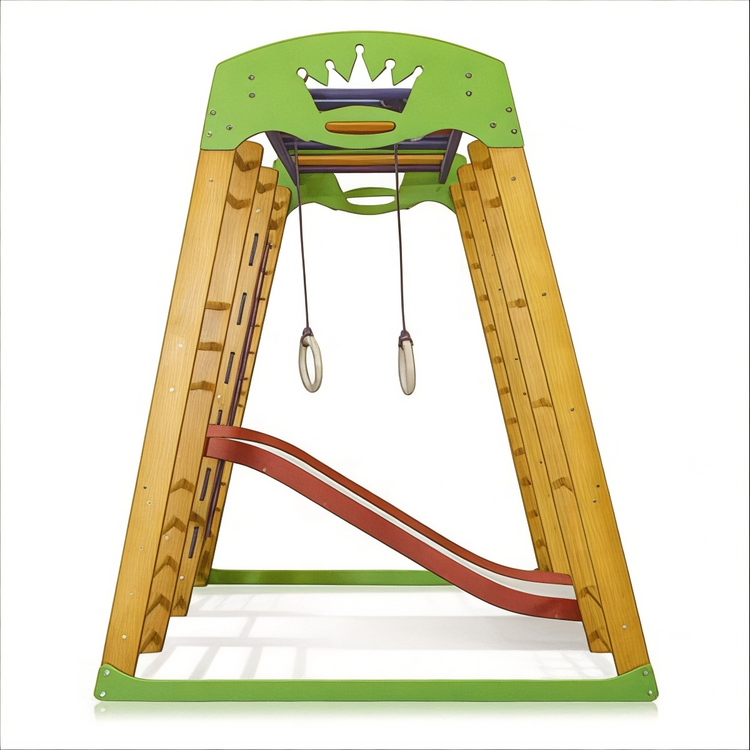 Спортивный комплекс изготовлен из бука и сосны с особым вниманием к каждой детали. Экологичен и безопасен.